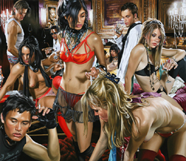 Nico Bick en Terry Rodgers vormen in de tentoonstelling een contrastrijk duo. Bick dwingt ons met zijn foto’s te kijken naar het thuis van daklozen onder viaducten en in de struiken. Hij laat daarmee zien hoe de minderbedeelden van de samenleving, met de schaarse middelen die hen ter beschikking staan, toch een eigen thuis creëren. Rodgers’ schilderijen, die recht tegenover de foto’s van Bick hangen, bieden een gecondenseerde blik in de huizen van het decadente Hollywood. Rodgers schilderijen worden bevolkt door verveelde halfnaakte fotomodellen. Schilderstijl en inhoud sluiten bij hem op elkaar aan: alleen de oppervlakte telt. Als de werken iets met ‘thuis’ te maken hebben dan is het de categorische afwezigheid ervan. Voor hun thematische relevantie steunen de doeken zwaar op het contrast dat ontstaat met het werk van Bick.