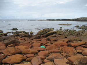 De kunstenaars Evelien Verkerk en Jan ter Heide tonen een selectie van gebreide objecten die zich (zoals de titel laat raden) ergens in een landschap bevinden. De objecten – veelal tulpen, paddestoelen en stenen met een handgemaakt omhulsel – lijken vaak op kleur geselecteerd: de breisels contrasteren met de natuurlijke omgeving. Op een aan de Ierse kust genomen foto, ligt bijvoorbeeld een steen met een mintgroen jasje die fel afsteekt bij de eindeloze hoeveelheid terra-rode en -bruine stenen die hem omringen.